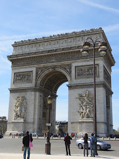 | We then made it to the Arc de Triomphe. We did a lot of walking and stairs at the Louvre. By the time we made it here and had to climb 284 stairs to the top of the Arc de Triomphe I wanted to die. Joe even took pictures of me resting to prove it! I will not post them here but let's just say that stair climb could be heart attack-inducing. |